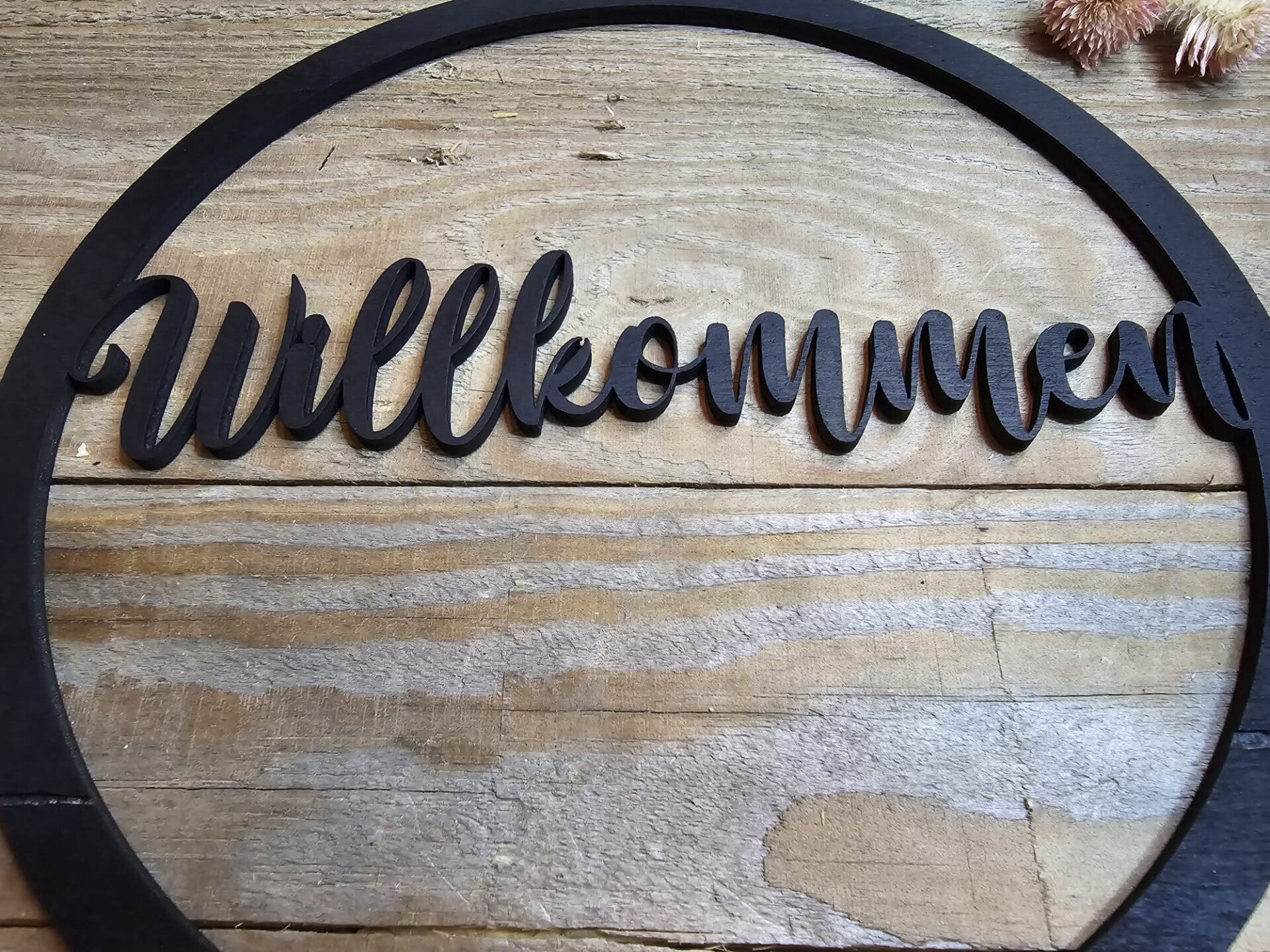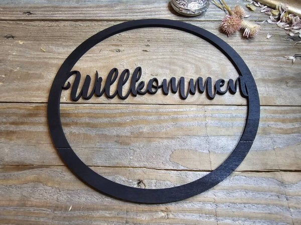 Holzkranz "willkommen" in Natur (Holz) oder Schwarz