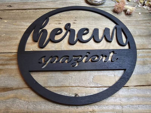 Holzkranz "herein spaziert" in Natur (Holz) oder Schwarz