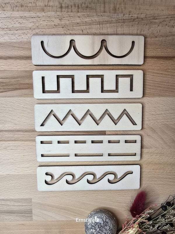 🔢 Set-Inhalt: 9 verschiedene Formen zum Nachfahren (z. B. Welle, Zickzack, Bogen etc.)
